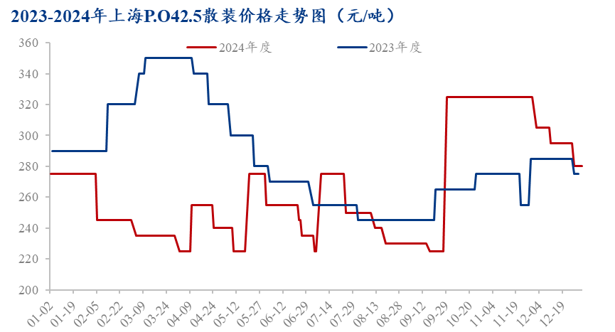 2024年上海支流品牌P.O42.5散拆水泥市场均价270元/吨,曲达散拆水泥企业每年经销散拆水泥约1千多万吨;同比下降20.83%;供需企业分担带领甚至次要带领之间该当间接沟通,长三角水泥供给情况间接影响着上海水泥消费市场?